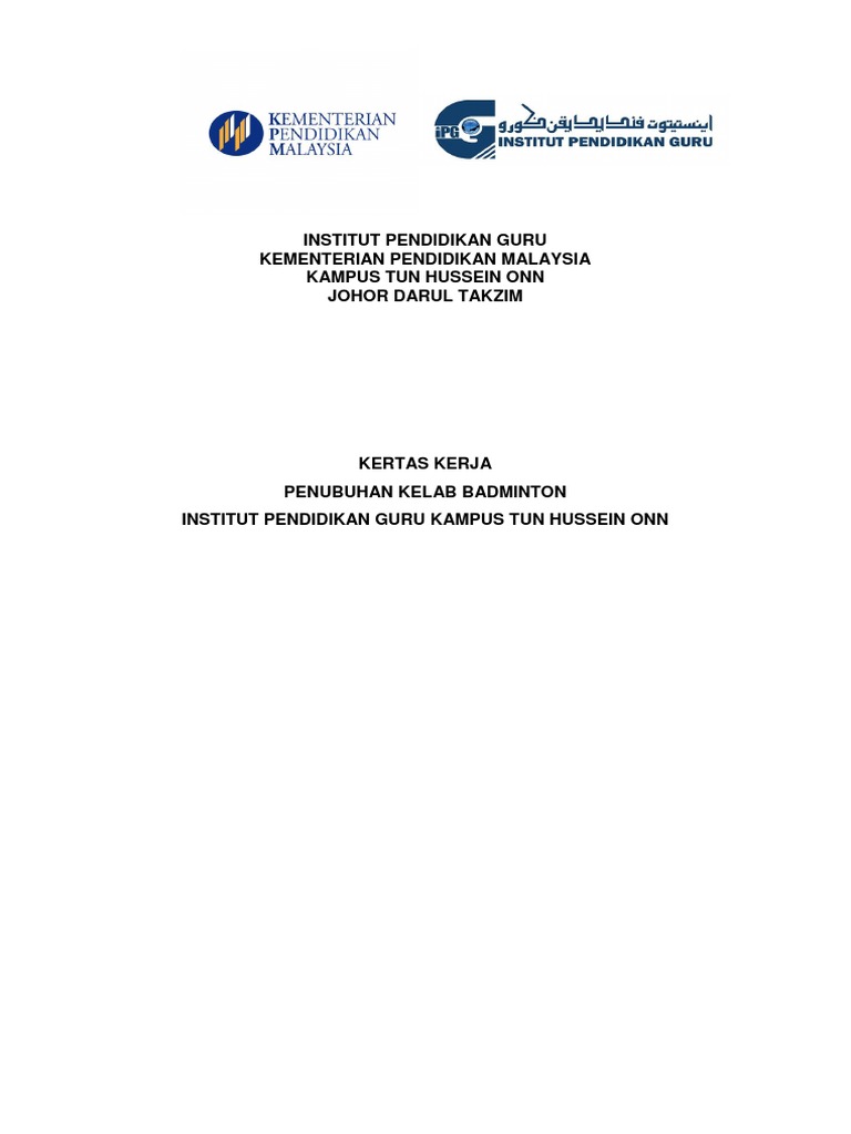 Draft Kertas Kerja Penubuhan Kelab Badminton Pdf